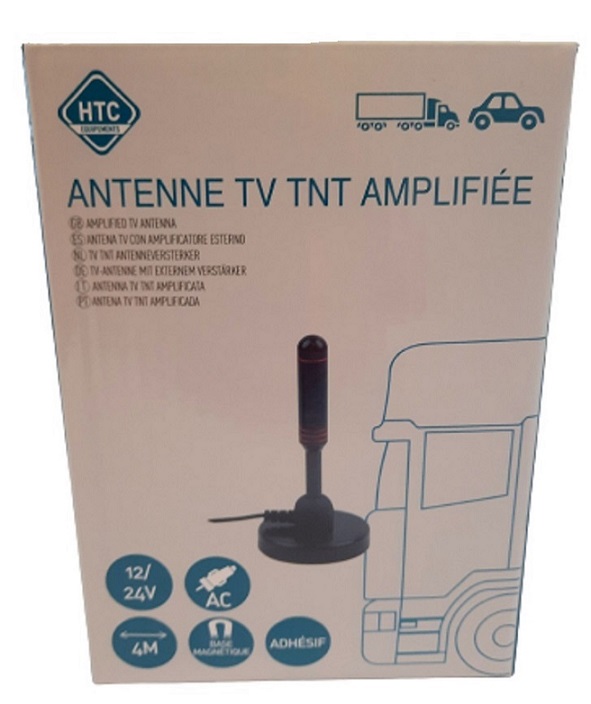 Antenne TV TNT amplifiée avec support magnetique et adhésif.