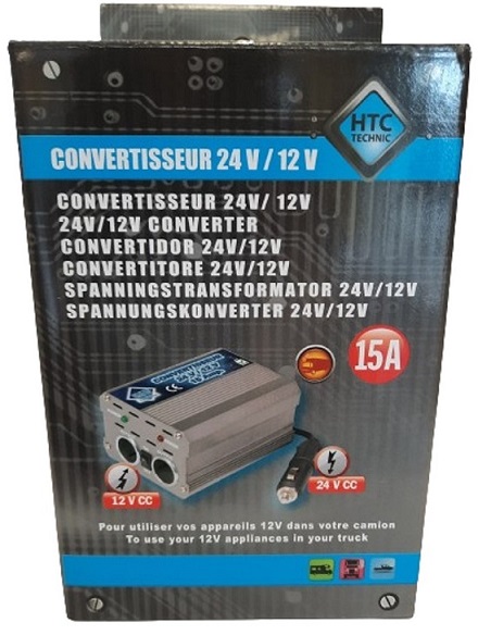 Convertisseur de tension de 24V a 12V, 15A + 2 prises allume-cigare femelle puissance 180W