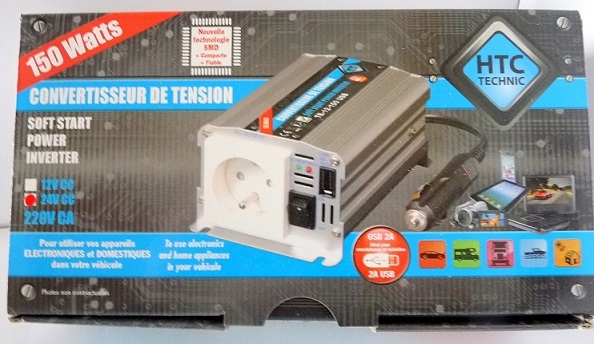 Convertisseur de tension 24V / 220V 150W avec prise USB-A 2A