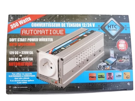 Convertisseur 12V / 24V automatique vers 220V 350W avec prise USB 0.5A