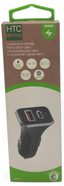 Chargeur allume cigare 12V / 24V 36W charge rapide USB A 18W + USB C PD 18W