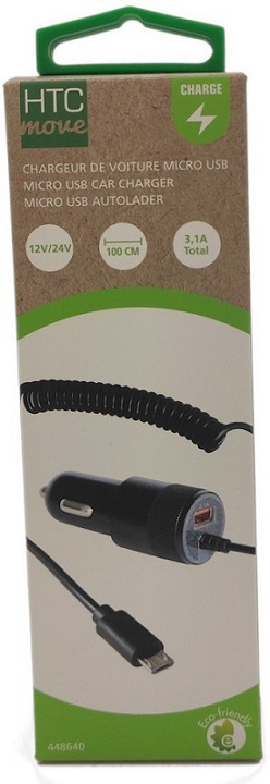 Chargeur allume cigare 12V / 24V Micro USB + USB A 3.1A supplémentaire avec câble spirale 1m
