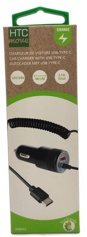 Chargeur allume cigare 12V / 24V Lightning + USB A 3.1A supplémentaire avec câble spirale 1m