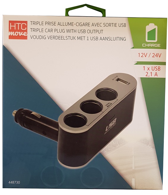 Triple prise allume cigare 12V / 24V avec 1 USB 2.1A