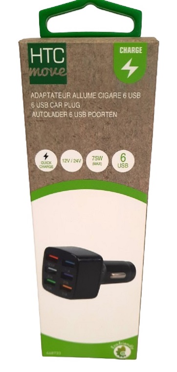 Chargeur allume cigare 12V/24V 6 USB 75W