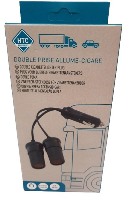 Prise Allume Cigare 12V / 24V avec cordon 25 cm et double prise allume-cigare femelle séparée 5A