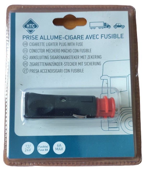 Prise allume cigare male 12V / 24V avec fusible 10A