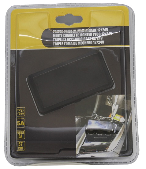 Triple prise Allume cigare 12V / 24V 5A 60W