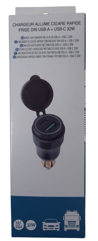 Prise allume cigare 12/24V type DIN USB-A/USB-C 32W
