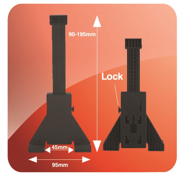 - Griffes 3 points ajustables de 90 à 195 mm avec bouton de blocage sécurisé