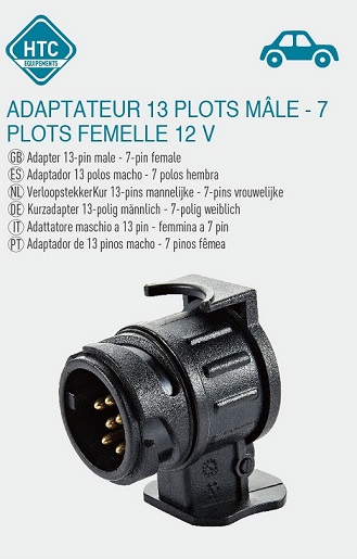 Adaptateur 13-plots mâle 7 plots femelle 12V