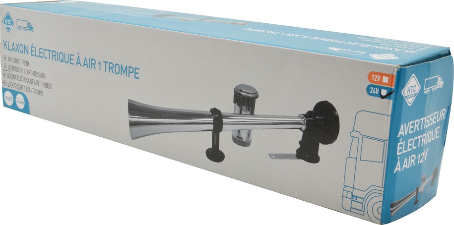 Klaxon chrome 1 trompe 47cm + compresseur air 24V