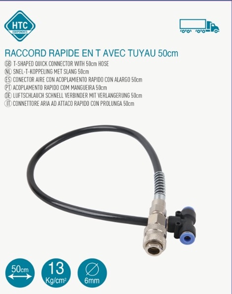 Raccord rapide en T pour pistolet à air avec tuyau de 50cm