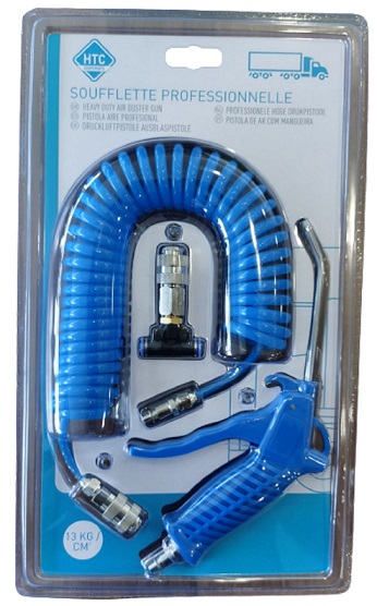 Pistolet soufflette pro avec tuyau 5 metres bleu et adaptateur T 13kg/cm2