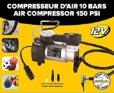 Compresseur d'air 12V 10 bars avec manomètre