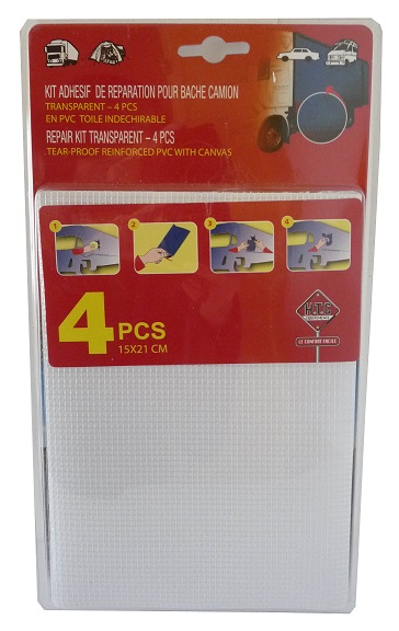 en PVC transparent, toile indéchirable, fixation par adhésif