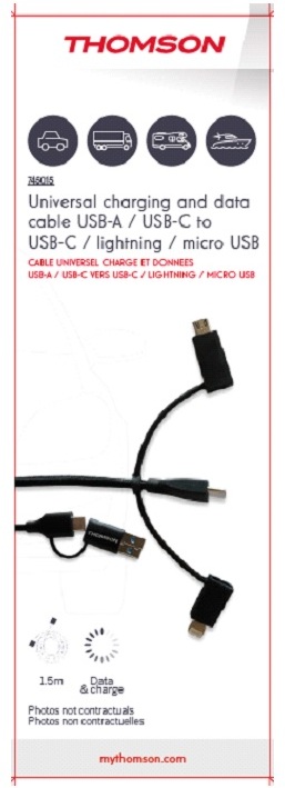 CABLE UNIVERSEL THOMSON DE CHARGE ET DONNEES 2.4A 60W