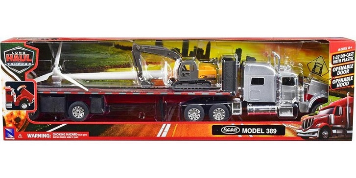 Camion 1/32ème PETERBILT 389 remorque plate avec eolienne et grue